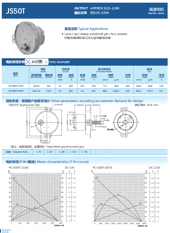 The JS50T series is an exemplary choice for precision-driven bespoke automation and industrial instrumentation. Engineered with an all-metal gearbox, it provides the mechanical resilience required for high-torque smart home actuators, medical diagnostic equipment, and automated vending mechanisms. Its compact, dual-ear mounting configuration and high-efficiency T-N-I characteristics make it a preferred component for high-end display stands and advertising light boxes.